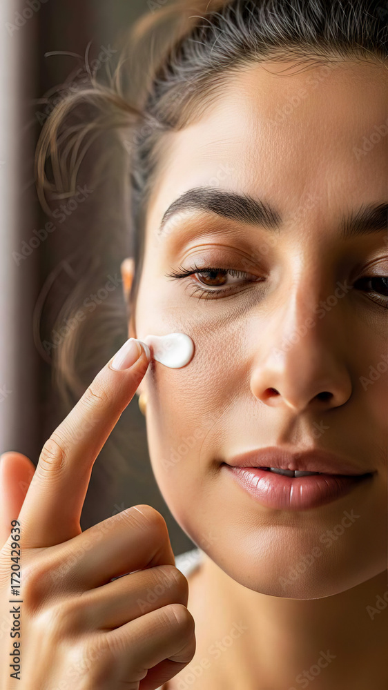 Latin woman Using Face Cream for a Morning Skincare Routine #1720429639