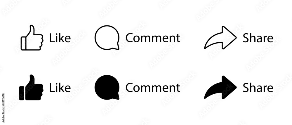 Like, comment, and share icon in generic style. Social media communication post elements #818711478