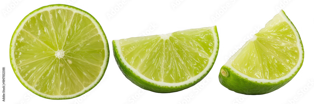 Lime slices and half on black green citrus isolated on a transparent background #1847832388