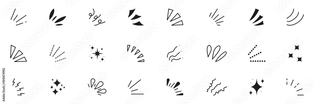 Line explosion surprise burst ray icon elements. Doodle exclamation confetti vector illustration. Manga comic expression icons. Sun burst doodle icon. Isolated Vector Illustration #1841674982