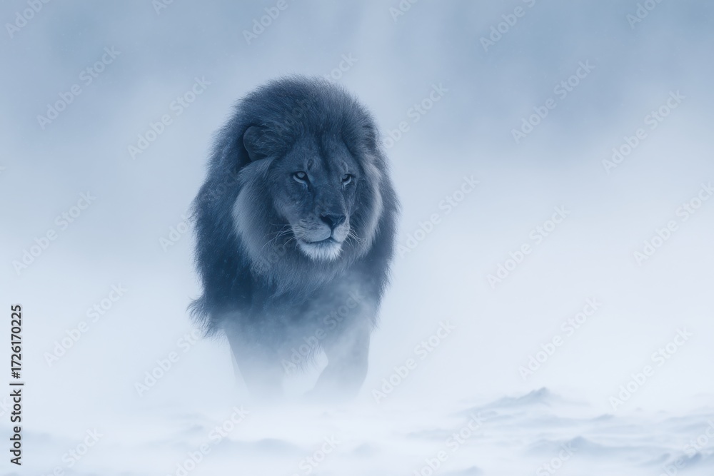Lion in snow winter field #1726170225