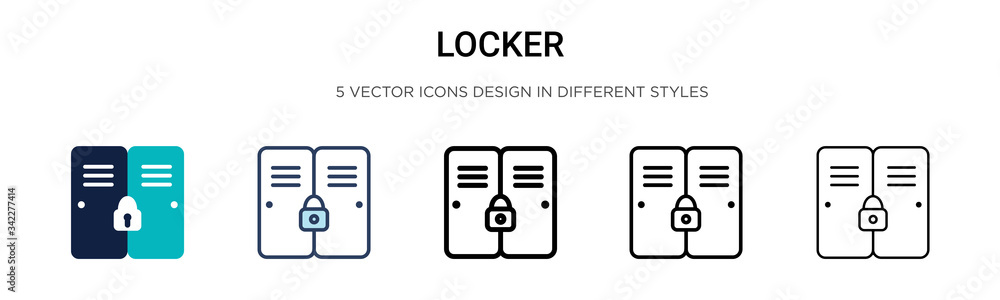Locker icon in filled, thin line, outline and stroke style. Vector illustration of two colored and black locker vector icons designs can be used for mobile, ui, web #342277414