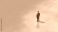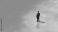 Lonely man standing on reflective blue surface with soft shadow conveying quiet melancholy #1940299930