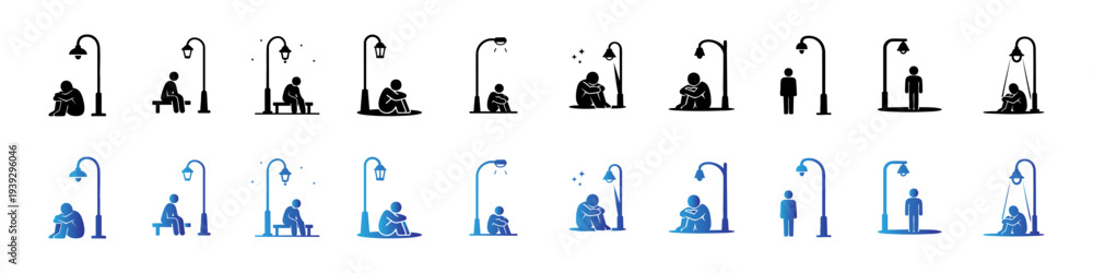 Lonely Person Under Street Lamp Illustration Set #1939296046