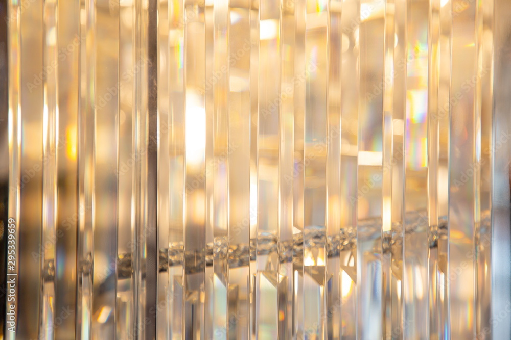 luxury hanging crystal chandelier shiny decoration interior , blur bokeh light lamp at background . beautiful electricity expensive furniture . #295339659