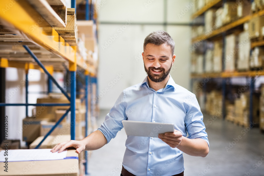 Man warehouse worker with a tablet. #190215315