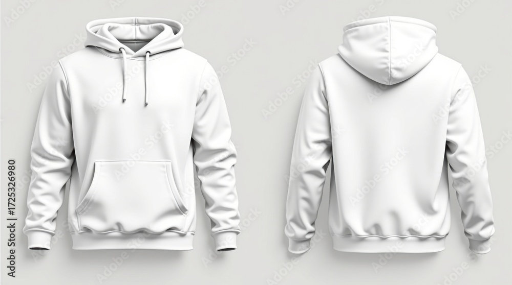 Maqueta realista de sudadera con capucha blanca para hombre, vista frontal y trasera, plantilla textil en blanco para marca de moda moderna #1725326980