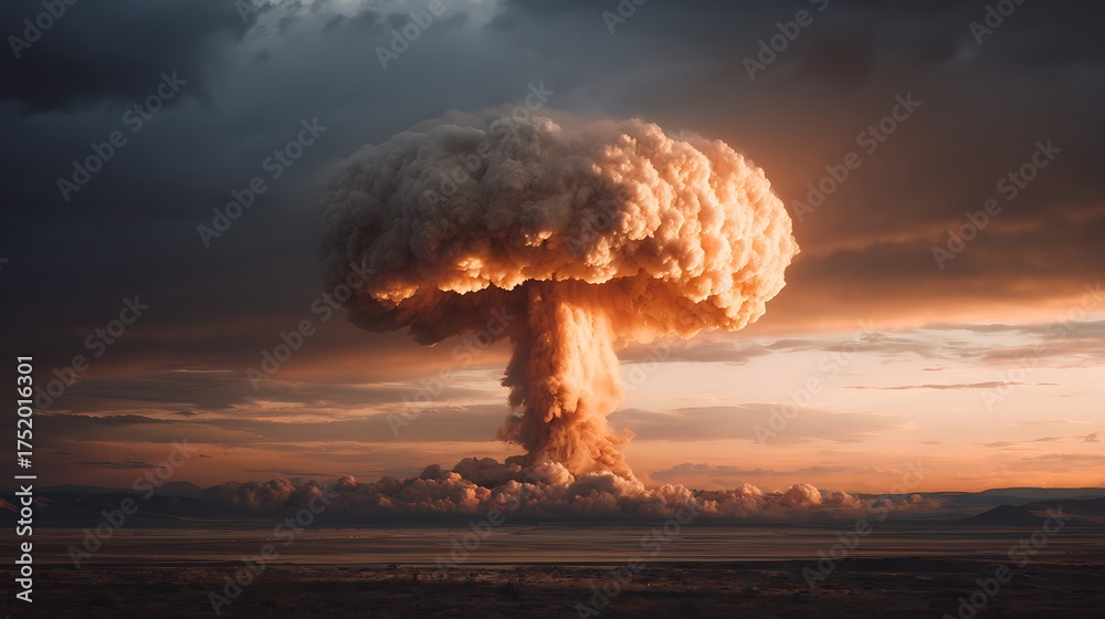 Massive nuclear explosion mushroom cloud at sunset #1752016301