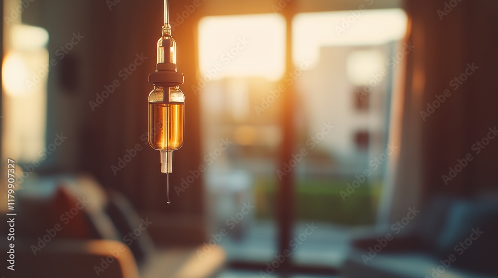 Medical IV Drip with Sunset Background #1179907327
