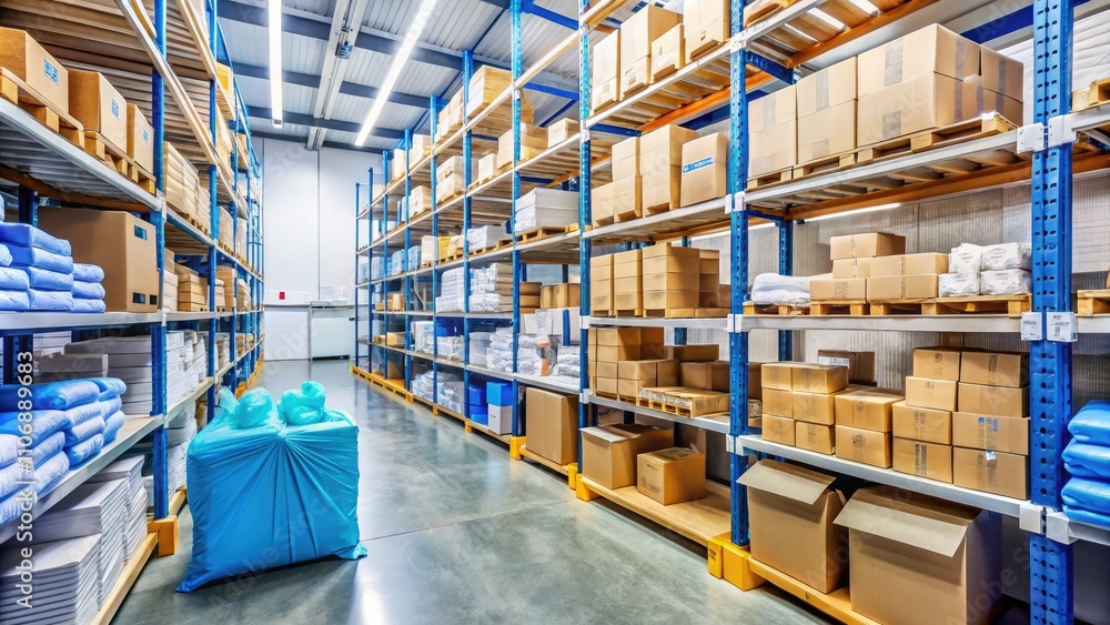 Medical Supply Warehouse Stock Photo - Clean Organized Storage of Medical Equipment, Gloves, and Syringes #1106889683