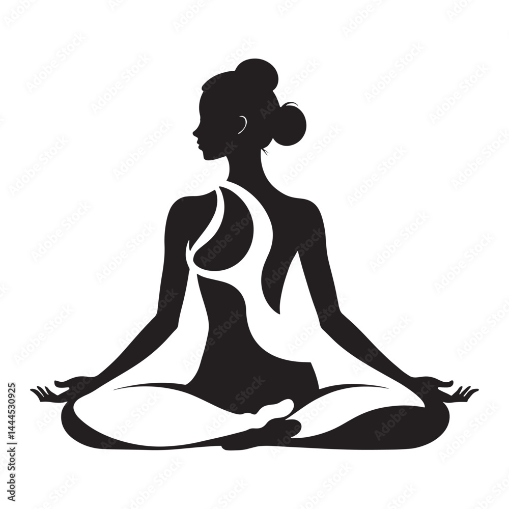 Meditation and Yoga Silhouette Icon for Mental Health, Wellness and Mindfulness Concept #1444530925