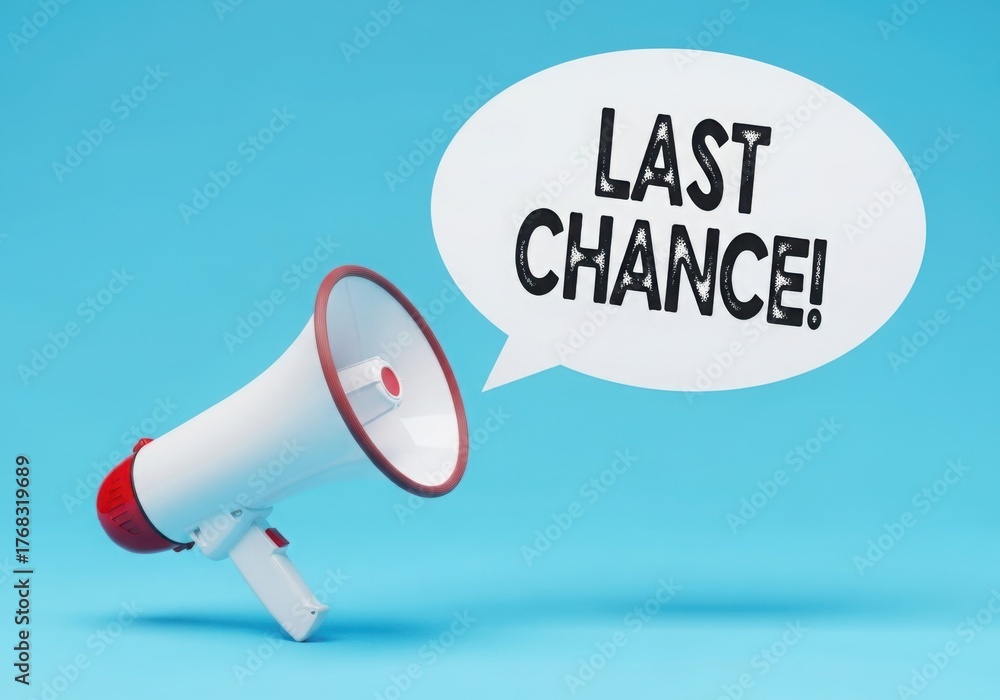 Megaphone announces last chance alert with bold text in speech bubble #1768319689