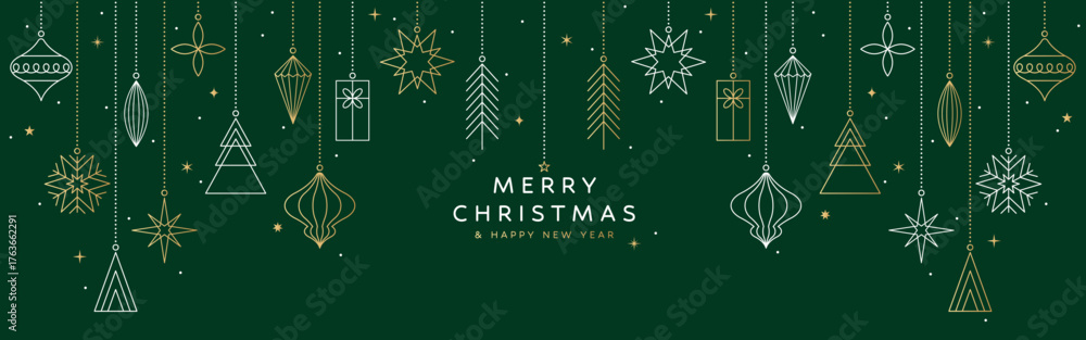 Merry Christmas banner, gold ornament card, green background #1763662291