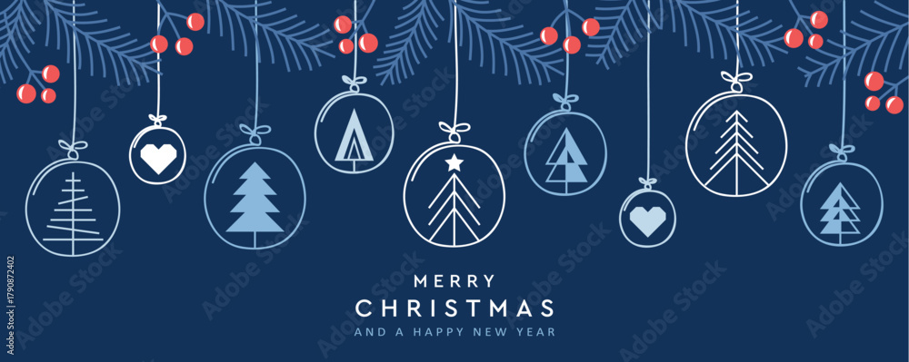 merry christmas card with hanging decoration in form of tree and heart vector illustration #1790872402
