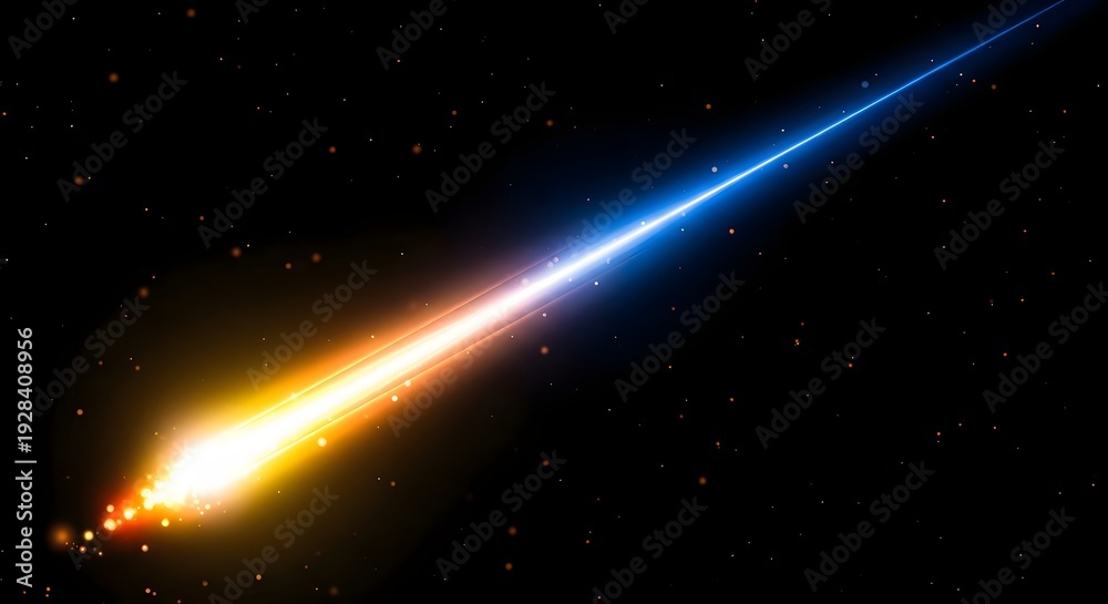 Mesmerizing light effect of a shooting star or meteorite burning up in the atmosphere with intense glow and trail #1928408956