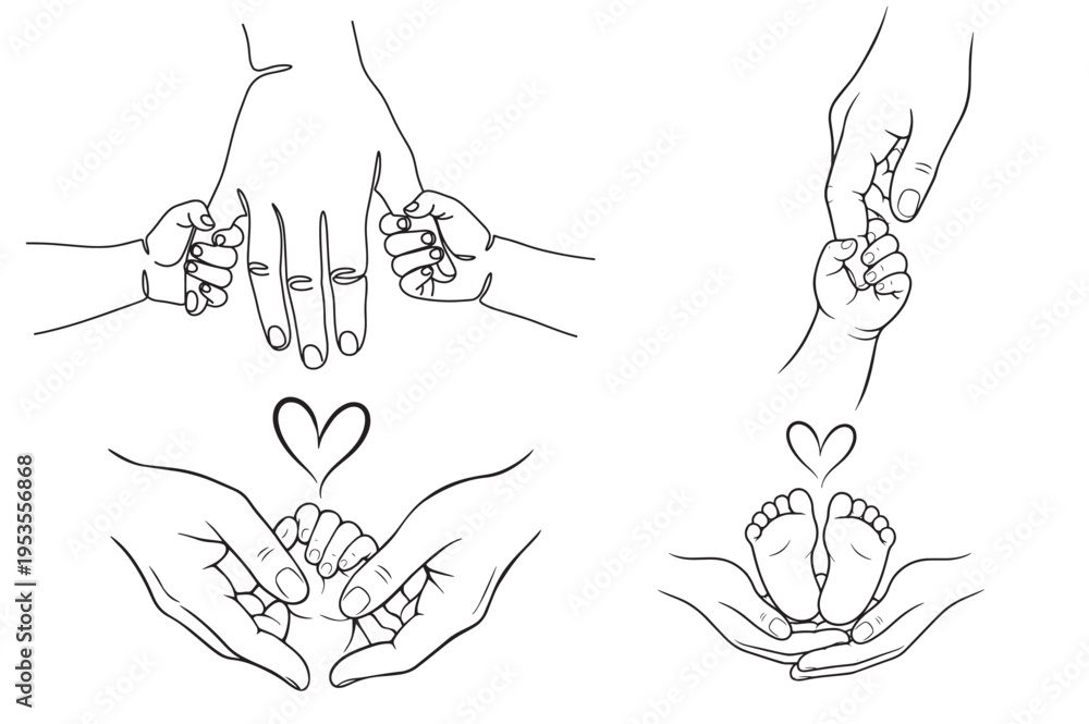 Minimal Family Hands And Baby Line Art Love Illustration Collection #1953556868