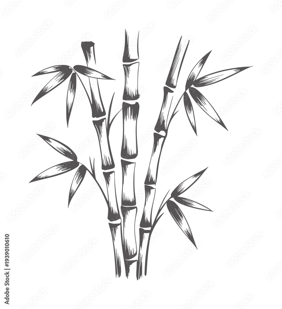Minimalist black and white ink of bamboo stalks and leaves plant leaf #1939010610
