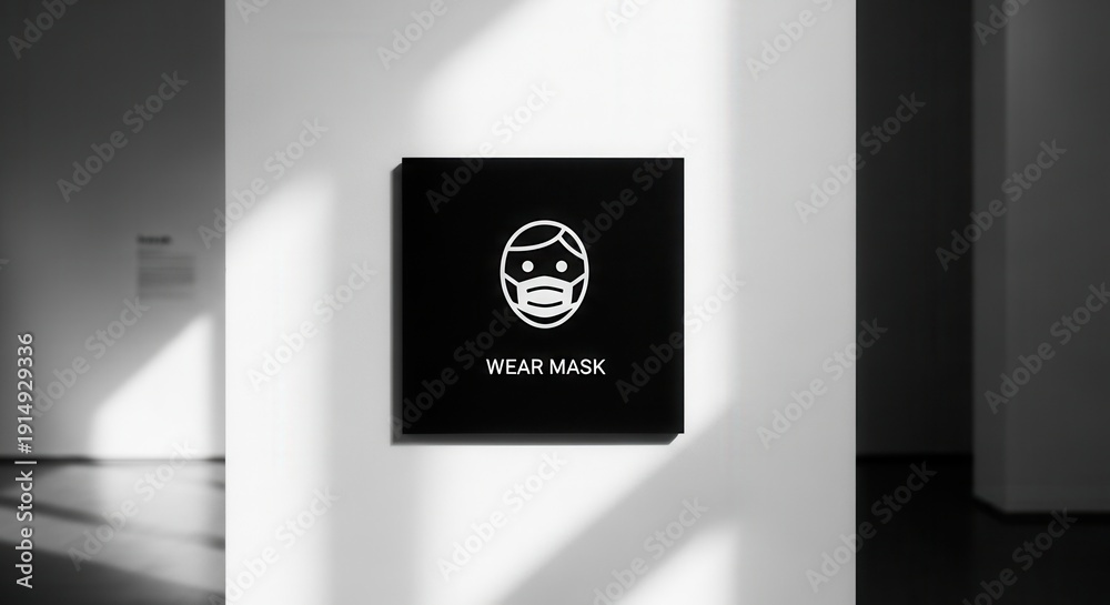 Minimalist Signage Directing Mask Usage In Modern Museum Environment #1914929336