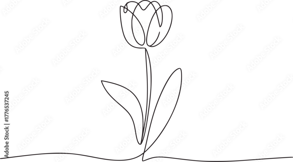 Minimalist single line drawing of a tulip flower plant #1776537245