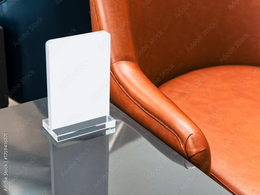 Mock up Menu frame on Table Bar restaurant cafe Blank white sign stand #1759416871