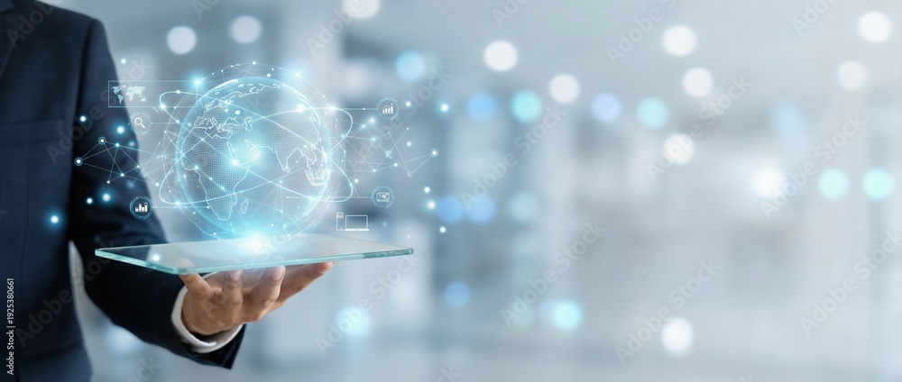 Modern business technology virtual communication and data networking concepts in a digital environment #1925380661