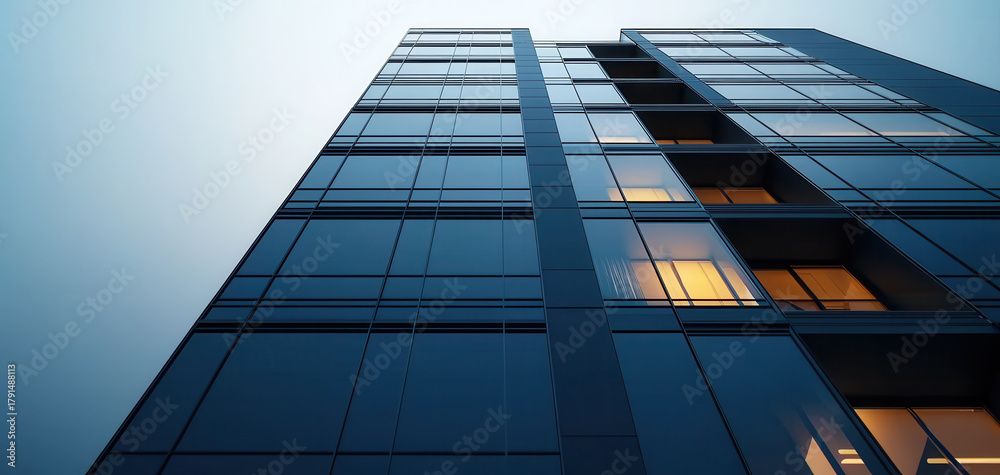 modern glass building with architectural symmetry and corporate elegance, symbolizing urban innovation and business success #1791488113