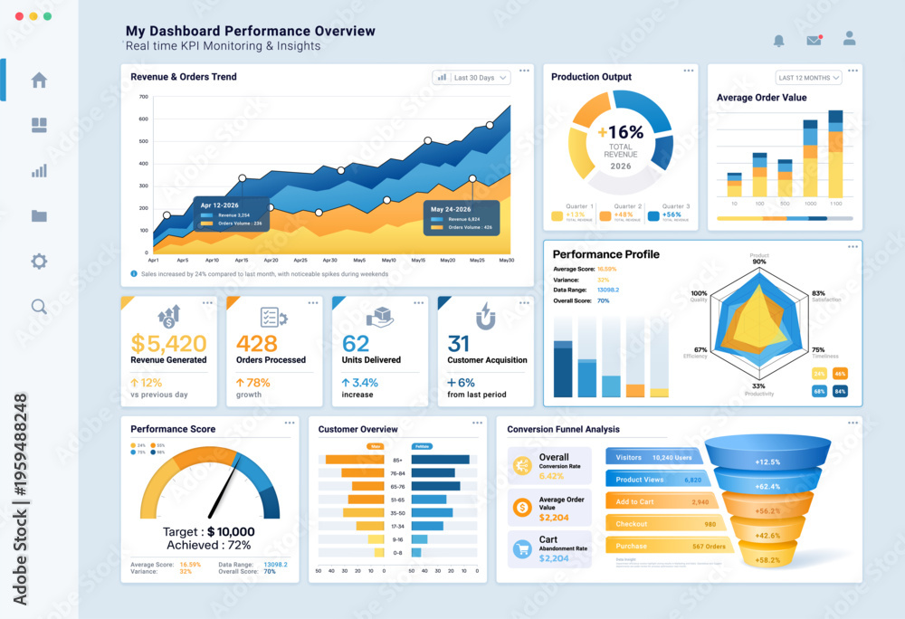 Modern KPI Dashboard UI with Business Analytics, Revenue Trends and Performance Metrics #1959488248