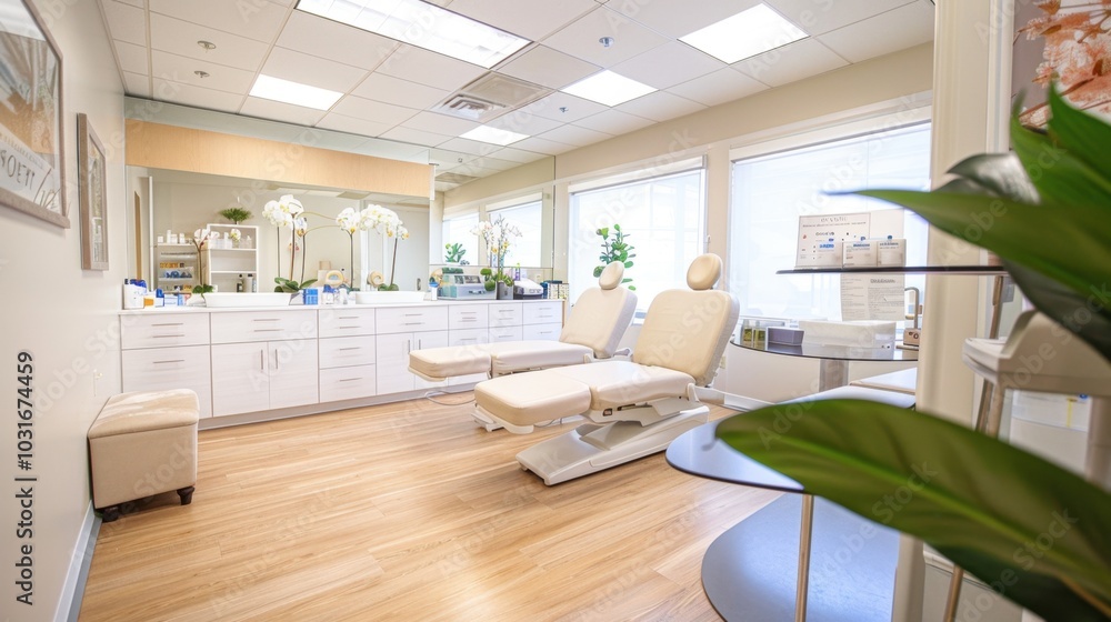 Modern Medical Examination Room with Bright Decor. longevity clinic #1031674459