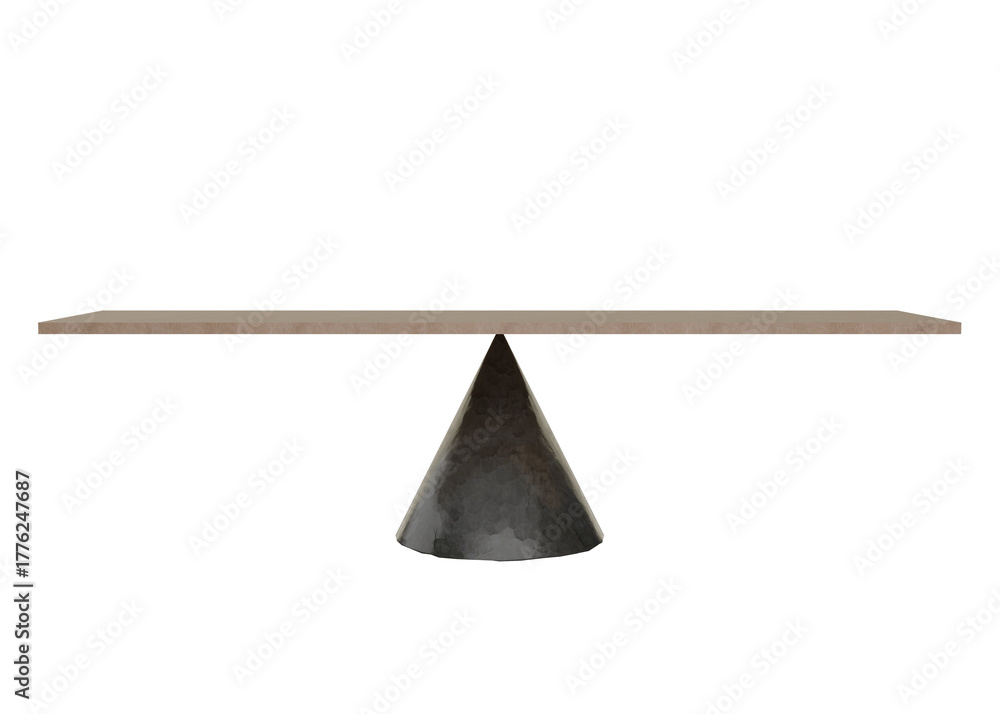 Modern minimalist balance concept with wooden tabletop and metallic cone base on PNG isolated on transparent background 3d illustration #1776247687