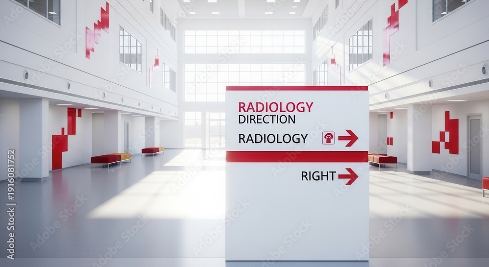 Modern Radiology Clinic Interior Displaying Directional Signage For Patient Navigation #1916081752