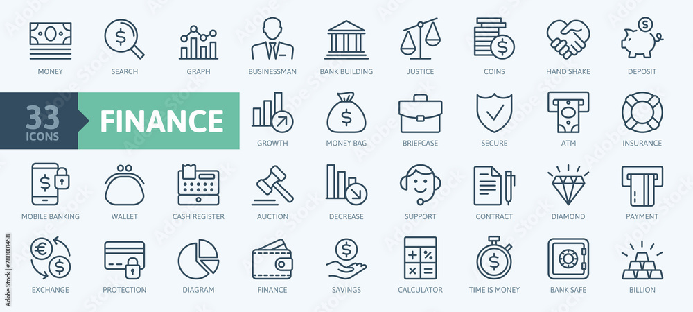 Money, finance, payments elements - minimal thin line web icon set. Outline icons collection. Simple vector illustration. #288001458