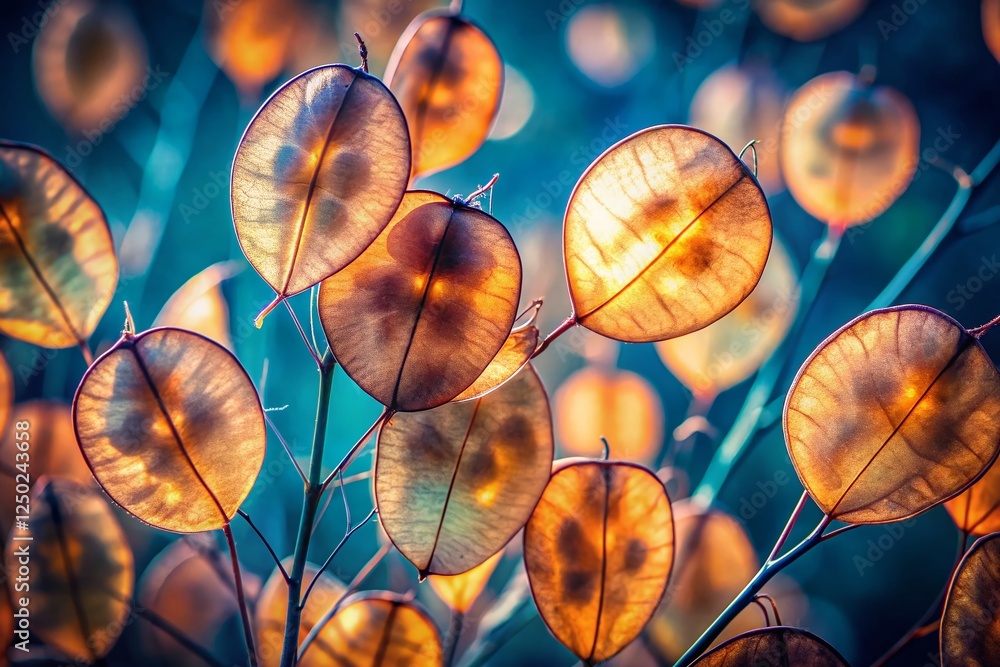 Monochrome Long Exposure Photography of Lunaria Annua Seed Pods, Delicate Silver Dollar Plant Seeds #1250243658