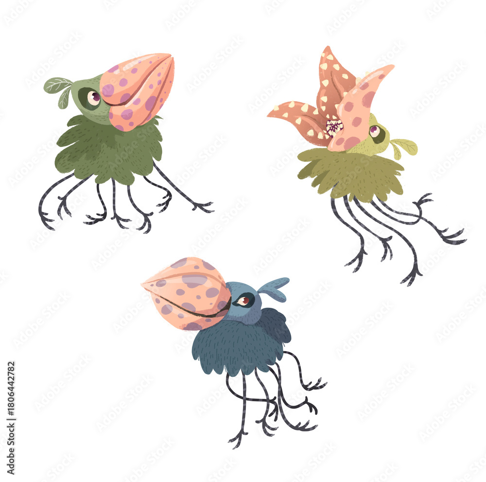 Monstruos con forma de planta carnívora, animales fantásticos. #1806442782