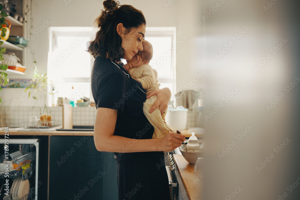 • #1777340329 Two businesswomen discussing plans in a modern office setting