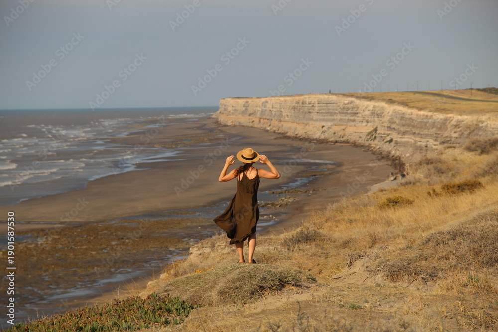 Mulher nas Falésias no balneário el condor em Viedma, na Patagônia Argentina #1901587530