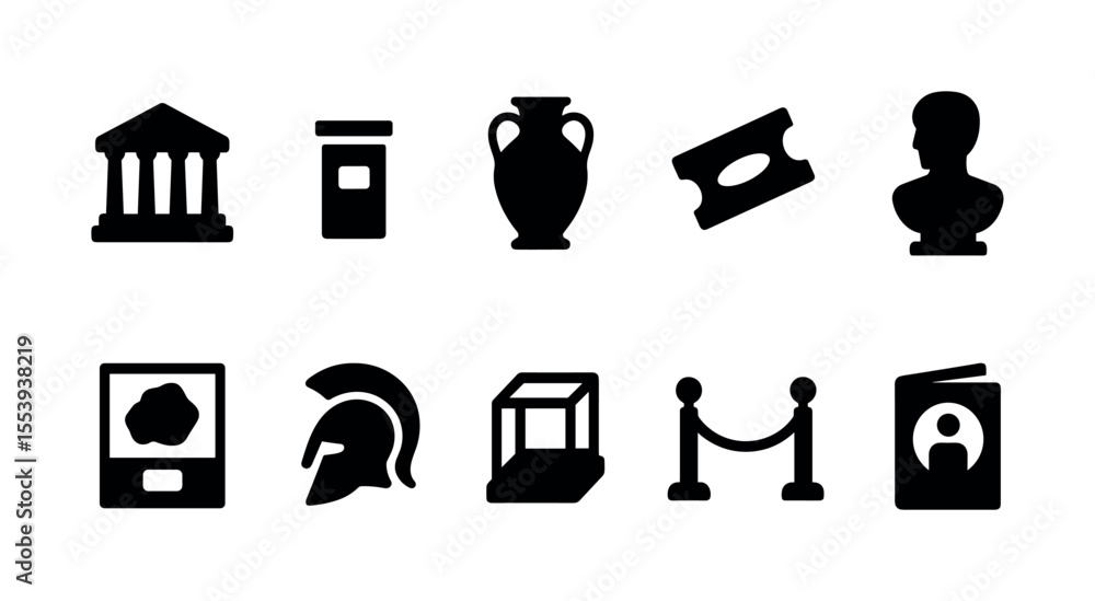 Museum and history filled icon set. ancient civilization symbols filled collection #1553938219