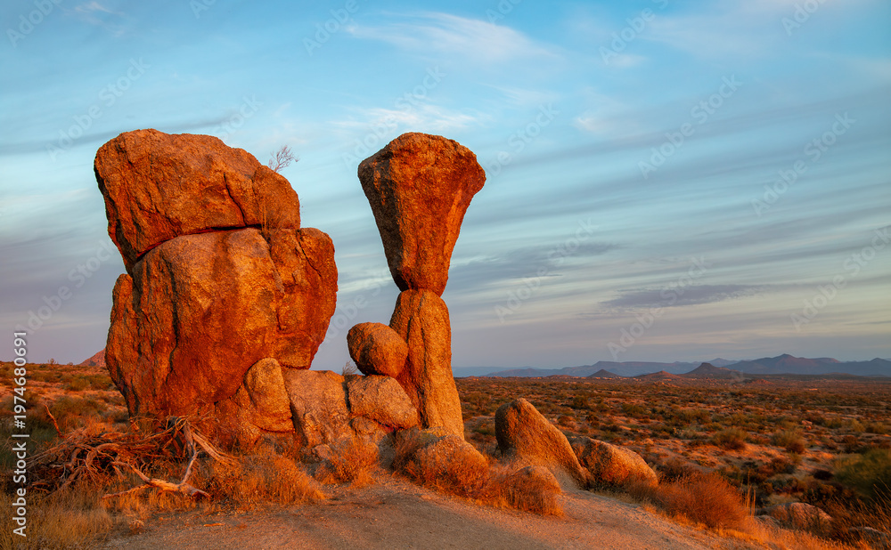 Mushroom Rock Formation At The Toms Thumb Trailhead In North Scottsdale AZ Early Morning #1974680691