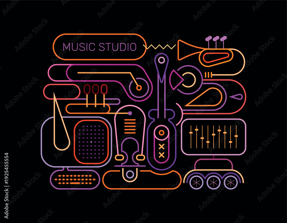 Music Studio Neon Colors Line Art Design #1925455554