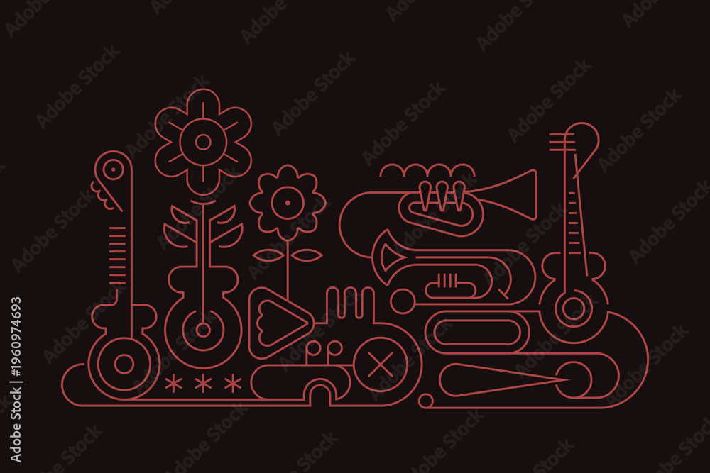 Musical Instruments And Flowers Abstract Vector Line Art Design #1960974693