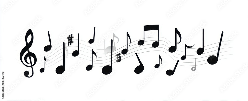 Musical Notes On Staff Lines Isolated On White Background For Music Education And Creative Projects Sheet Music Elements For Design And Composition #1787387492