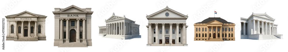 Neoclassical architecture building set including museum, bank, and grand public structures isolated. Government, finance, and culture concepts. #1700352732