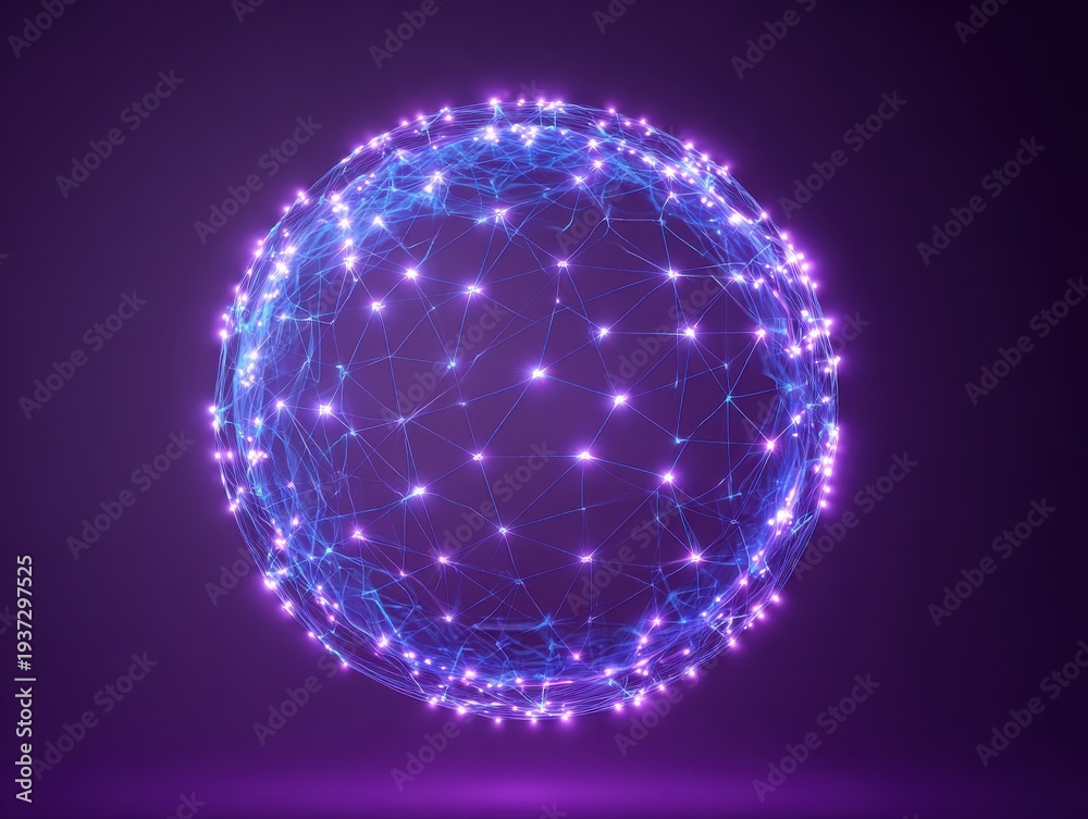 neon blue worldwide network sphere isolated on a purple background #1937297525