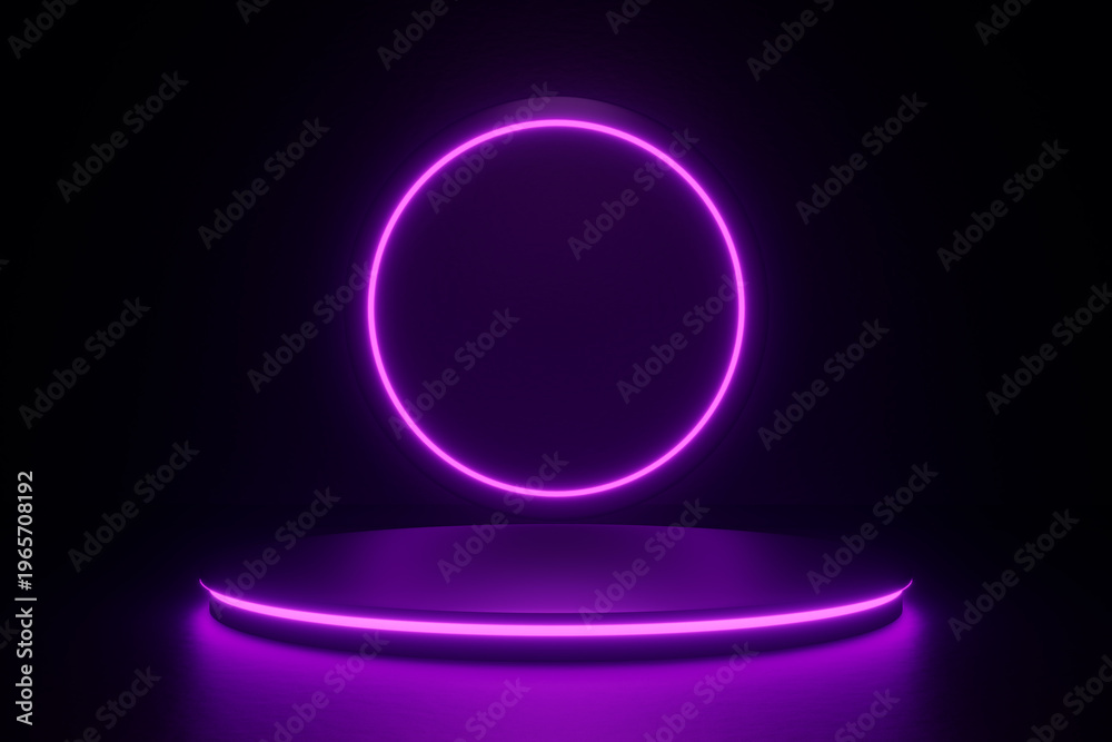 Neon Purple Circular Stage With Glowing Ring Above Minimal Futuristic Platform #1965708192