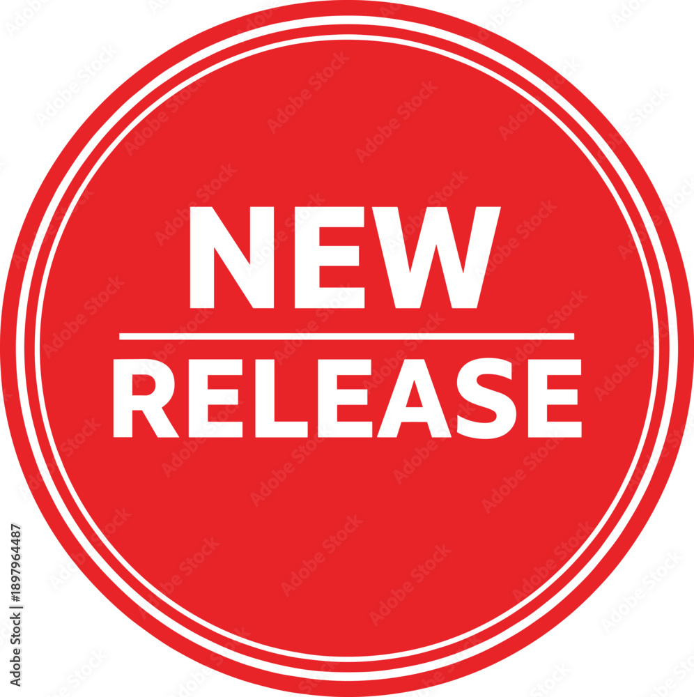 New release red circular badge vector illustration with bold typography for product launches, announcements, and marketing promotions #1897964487