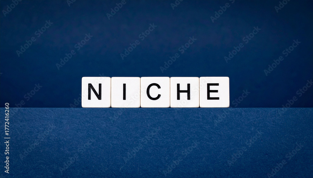 Niche Text on White Letter Tiles isolated on a Navy background #1772416260