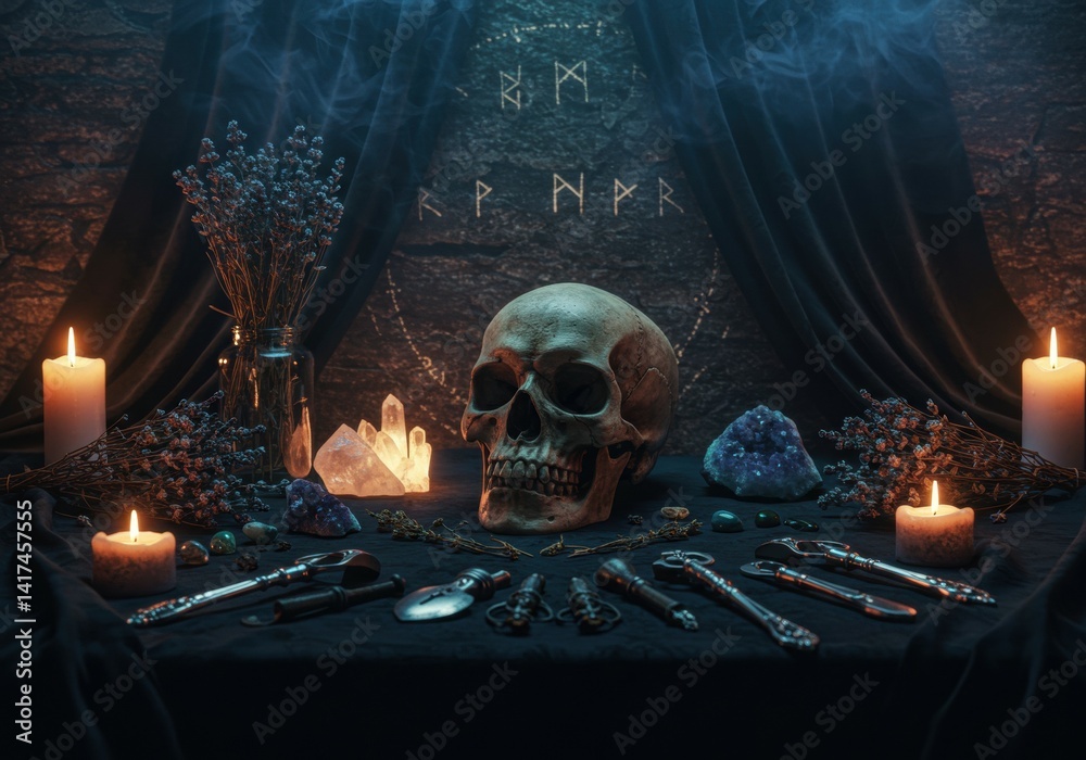 Occult Ritual Altar with Skull and Candles #1417457555