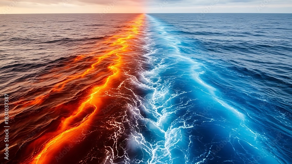 Ocean divide hot and cold water contrast nature phenomenon climate change seas #1831037387