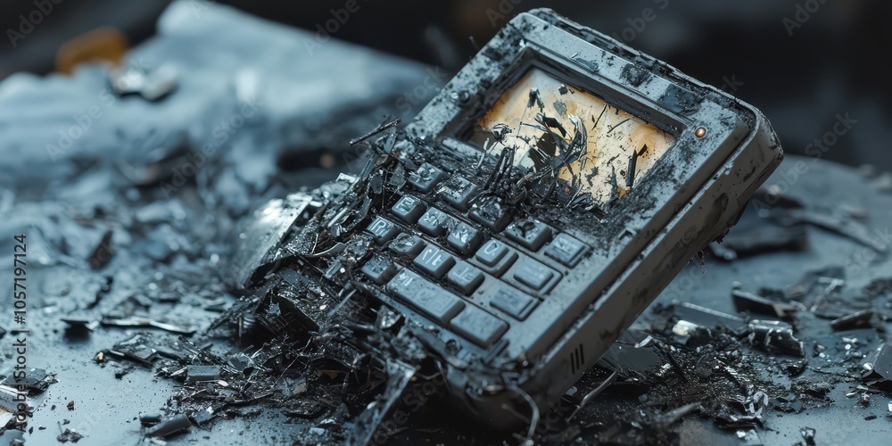 Old pager undergoing dramatic destruction, representing outdated technology and decay, captured in high resolution. #1057197124