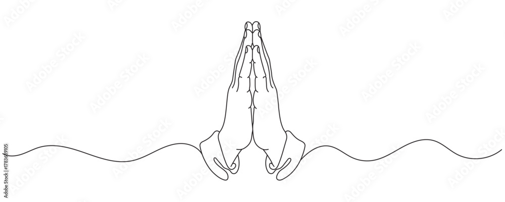 One Line Continuous Drawing of Raising Hands for Dua Pray. Islamic Traditional Prayer Gesture Line Art. Editable Stroke #1783689105