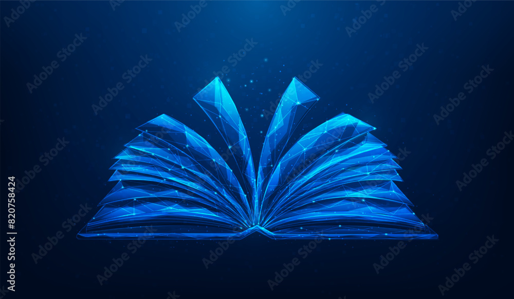 open book digital e-learning education.study and knowledge on blue background.vector illustration low poly wireframe #820758424